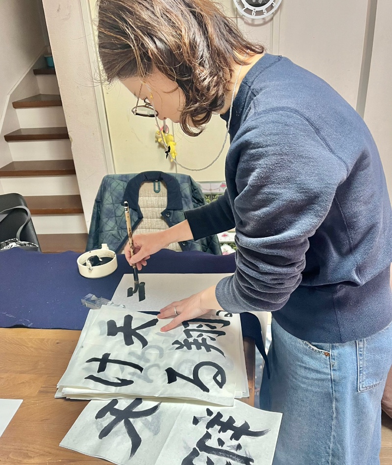 千晴堂は書道協会から独立しているので決まったお手本がなく、生徒さんと一緒にカリキュラムを作っていきます。基本の楷書から行書までしっかり身につくお手伝いをさせていただきます。